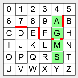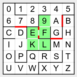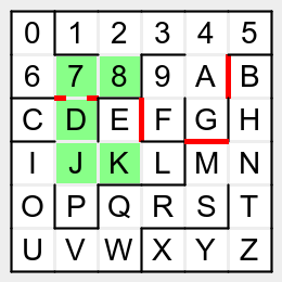 一歩で、上下左右に進めますが、太線は壁なので超えられません。